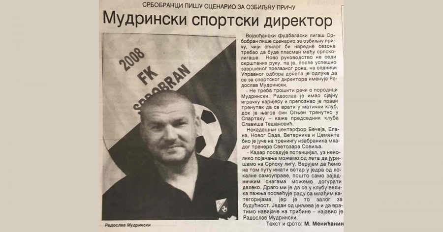 Novo rukovodstvo ne sedi skrštenih ruku, pa je, posle uspešno završenog prelaznog roka, na sednici Upravnog odbora doneta je odluka da se za sportskog direktora imenuje Radoslav Mudrinski.
