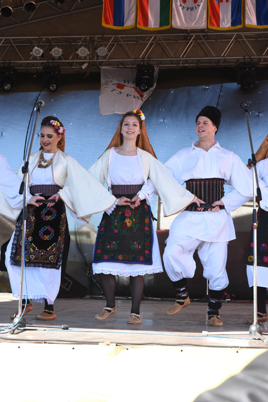 Od 10 do 16 časova na bini su se smenjivala kulturno-umetnička društva i izvodila igre iz svih krajeva Srbije. Na bini smo imali priliku da vidimo KUD-ove iz Bečeja, Kraljevaca, Kisača, Nove Pazove, Žarkovca, Loznice, Kumana I Novog Sada.