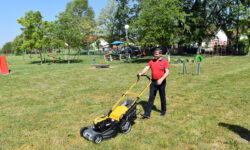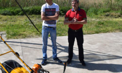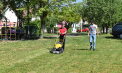 Dvojica predstavnika građana i vlasti su nakon izjava za medije svoju pažnju posvetili košenju trave, jer naravno mora se poklon odma upotrebiti i proveriti kako radi. Pokosio je predsednik dobar deo travnjaka i svima se učinilo da mu košenje ide od ruke, te je predloženo da ga odmah treba upisati na spisak članova koji su zaduženi za košenje. Jeste da je to bila šala, ali se on nije bunio i kaže da bi rado to radio, samo da ga obaveste ranije kako bi u svoj plan aktivnosti uvrstio i košenje igrališta.