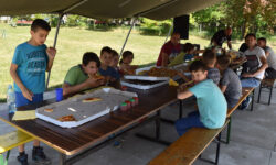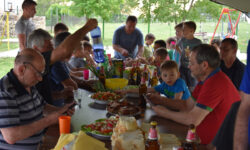 Svi su se novinari razišli, predsednik je otišao kako bi nastavio sa svojim dnevnim aktivnostima sa obećanjem da će se vratiti popodne kad završi sa poslom, a mi iz Srbobran Danasa smo ostali da sa Našom Pričom provedemo dan u druženju. I tako je i bilo, dan je bio lep, opuštena atmosvera u prirodi uz vatricu, na kojoj se peku prasići za proslavu kaja je planirana za kasnije. Mnoštvo dece, igra se mini basket, vrteška sa najmlađima se neprestano okreće, a ljuljaška je zauzeta neprestano, iako nismo primetili da postoji red za čekanje na nju. Na klupama i oko njih su okupljeni mnogobrojni roditelji, bake i deke mališana, komšije i prijatelji i svi u neradnom danu, upotpunjenom suncem i laganim vetrićem, razgovaraju i uživaju u idiličnoj atmosveri.