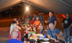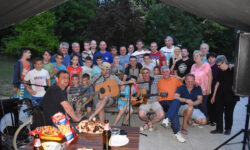 Kako je dan polako zalazio u tamu atmosvera se podgrevala, a je NAŠE društvo postalo veselije kada je u PRIČU ušla i karakteristična muzika Drvene Bande. Svima poznati tekstovi pop-rok muzike upakovani u Vojvođansko ruho otegnutog govora razgalili su društvo, kojem se pridružio i naš predsednik Radivoj Paroški. Veselje se nastavilo do pristojnih večernjih sati kada je i vatrometom označen vrhunac proslave. Ljudi koji na ovakav način proslavljaju dobijanje poklona, kao priznaje za svoj dosadašnji rad, ne mogu biti loši. Oni se raduju što će moći da nastave sa radom, a rad koji Vam proleti uz druženje nikada nije težak ma koliko Vam vremena oduzeo.