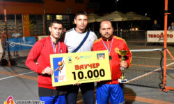 Duga i izuzetno zanimljiva tri seta odlučila su pobednika. Jedan set više osvojili su Mijić Zoran i Miladin Srdanov iz tima MEDISON SINIŠA GAVRILOV i tako nas rešili nedoumice o tome ko je trenutno najbolji. Samo trenutno, a proverićemo sledeće godine ponovo. Odmah su usledila čestitanja i naravno dodela medalja, pehara i vrednih nagrada. Za osvojeno Prvo mesto, kao nagradu, tim MEDISON SINIŠA GAVRILOV dobio je Letovanje za dve osobe u Sutomoru. Tim DOO DELCO za osvojeno Drugo mesto, dobio je vaučer za kupovinu sportske opreme u vrednosti od 10.000 dinara, a ekipa PARKETAR DANE na Trećem mestu dobila je nagradu od Fitnes kluba APOLON, tri meseca besplatnih treninga za dve osobe.