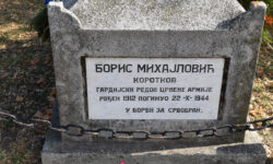 Najsvetijom srpskom pesmom, ili kako neki kažu ratnom himnom Srba “Tamo daleko”, hor je zatvorio svečanost, a potom su se delegacije i nekolicina građana uputili do spomen obeležja ruskom vojniku kraj sportske hale, gde je takođe i ovaj “kamen”, podsetnik na istoriju, ukrašen cvećem i osvećen poštovanjem i naklonom onih koji cene ljudsku žrtvu vojnika Borisa Mihajlovića Korotkova.