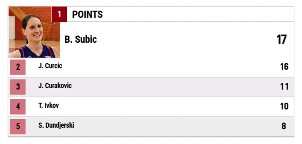 Najistaknutija kod “belih devojaka” bila je Branka Subić, koja je kapitenski vodila utakmicu i zabeležila 17 poena, dok su dvocifrene bile još i obe Jelene i Tamara. Da prokomentariše ovaj meč i podeli sa nama svoj sud, Branka je rado pristala, a žal za propuštenom šansom mogao se osetiti u njenom glasu iako je ona uvek vesela i raspoložena.