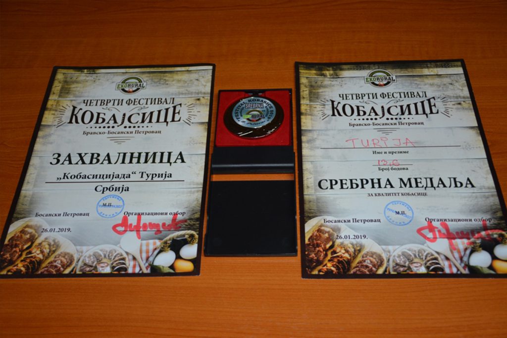 “Za kraj moramo malo da se i pohvalimo. Bili smo u Bosanskom Petrovcu, u mestu Bravsko i u Drinićima. Tamo smo se takmičili u suvoj kobasici, jer se oni takmiče samo u toj kategoriji, i u konkurenciji od 64 ekipe mi smo sa Turijskom kobasicom osvojili 2. mesto. To je jako veliki uspeh, pogotovo što je u inostranstvu i što je bilo jako puno uzoraka na takmičenju. Jako smo zadovoljni, a bili smo i iznenađeni. Domaćini su nas najsrdačnije dočekali i ugostili. Imali smo jako ugodan smeštaj, spavali smo na planini od 1050 metara nadmorske visine. Zaista jedan predivan ambijent sa prepuno snega i sa najčistijim vazduhom”, izneo je svoje utiske gospodin Atanasković.