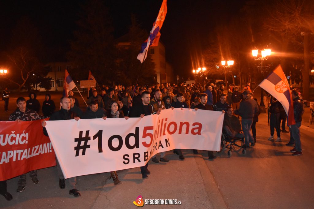 Četvrti vikend u nizu održavaju se protesti pod nazivom “1 od 5 miliona” i na srbobranskim ulicama. Skup je kao i prethodnih subota otpočeo u 18:00 časova na Trgu Slobode.