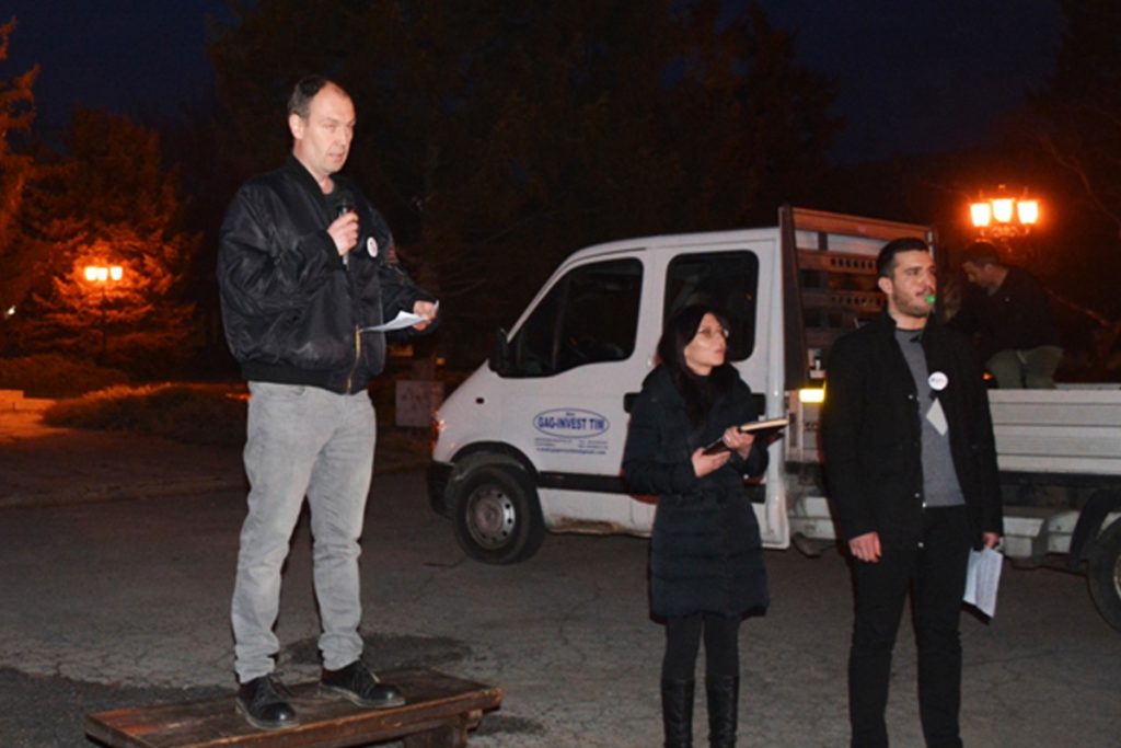 Kao i do sad u subotu od 18:00 časova u parku su se okupili protestanti koji su ovoga puta za govornike imali Vladimira Mudrinskog, Nenada Babina i Tijanu Hegelj, protestnu aktivistkinju iz Beograda. Oni su pozivali na ostavke lokalnih političara na vlasti, a od koalicionih partnera SNS-a su tražili da im obustave podršku kako bi izgubili većinu u skupštini opštine.