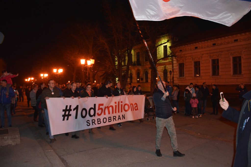 Šesti vikend za redom protest opozicije i građana nezadovoljnih stanjem u zemlji “1 od 5 miliona”, održava se na srbobranskim ulicama i trgu.