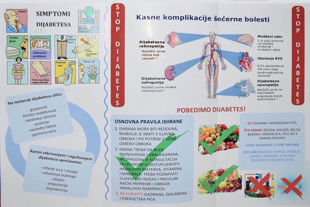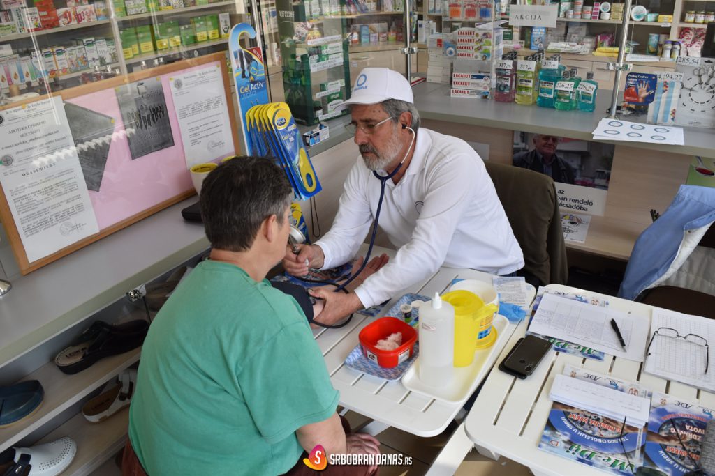 Više o ovoj temi saznali smo na licu mesta, u apoteci Doma zdravlja “dr Đorđe Bastić”, od lekara Ilije Gazepova, koji kao i uvek sprovodi ovakve i slične akcije: “Može se slobodno reći da je ovo redovna akcija, koja je zacrtana našim planom aktivnosti za ovu godinu. U nedelju 7. aprila je svetski Dan zdravlja, koji mi svake godine obeležavamo na svoj način, a ove godine ćemo 4 dana raditi preglede po ceo dan, deliti edukativne materijale i razgovarati sa ljudima o opasnostima dijabetesa i povišenog krvnog pritiska. Preventivne kontrolne preglede obavljaćemo pre podne u apoteci, a posle podne smo u našim prostorijama. Na taj način pružamo priliku svim ljudima, a pogotovo dijabetičarima, da u svoje slobodno vreme mogu da urade mini dnevni profil. Pre obroka, dva sata posle jela, ili u bilo koje doba dana. Naravno uz te aktivnosti edukujemo ljude o zdravoj ishrani, potrebi fizičke aktivnosti i uopšte o zdravom stilu života. Svako ko dođe na pregled u naše prostorije dobiće na poklon jabuku, a tamo smo u mogućnosti i da merimo telesnu visinu i težinu, puls oksimetriju, procenat telesne masnoće”.