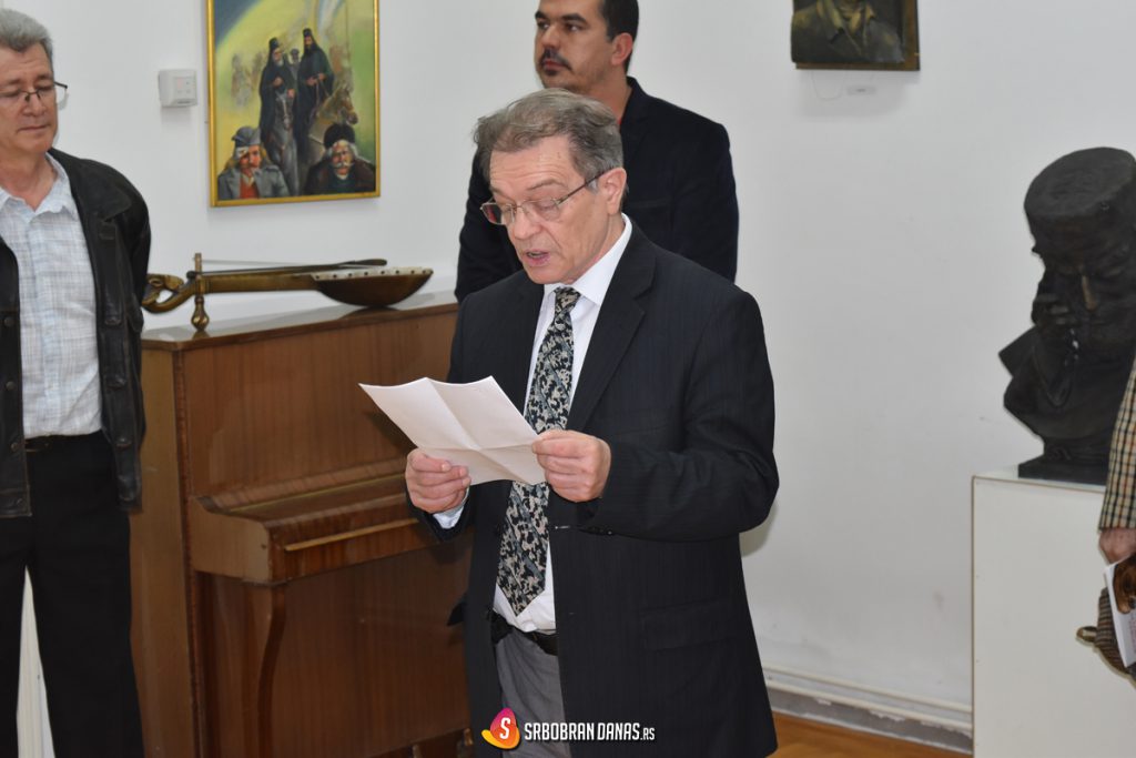Prvi se okupljenima obratio direktor Ustanove kulture Vladimir Nikolić, koji je predstavio svoje brojne goste. Na samom početku prisutni su mogli da uživaju u odlomku narodne pesme “Stari Vujadin” koju je otpevao i uz gusle oplemenio poznati guslar Miljan Vujović. U nastavku večeri reč je preuzeo istoričar umetnosti Mile Ignjatović koji je iz stručnog ugla dao kritiku prikazanim delima, ali i samom umetniku.