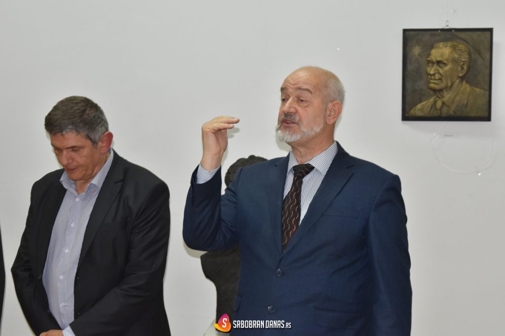 Za kraj je ostavljen onaj čije su reči okupljeni ljubitelji umetnosti sa zebnjom čekali da čuju. “Pesnici govore rečima, slikari slikama, skulptori skulpturama, rekao je čuveni filozof Paskal. Tu njegovu reč uzeo je pesnik Rilke kao moto za svoju knjigu o Rodenu. Čast mi je da budem u ovom slavnom gradu, slavnog imena, i što imam priliku da kažem neku reč povodom ove izložbe. Ljubu Srdanoviću niko ne može dati primedbu da on troši glinu na bilo koga, on je ovekovečio i ostavio u bronzi najznačajnije ličnosti naše kulture, a onda je jedan spomenik, za koju čujem da će uskoro biti postavljen u Vrbasu, posvetio našem neznanom pevaču, guslaru. To je naslednik Homerov, to je onaj koji je kobajagi neznan, a svi znamo ko je bio Filip Višnjić, ko je bio Tešan Podrugović, ko je bio Starac Milija. Svaki od njih je dobio spomenik, a ako ne znamo kako su oni izgledali, sad je to jedan zbirni lik. Čestitamo Srdanoviću”, rekao je veliki Matija Bećković, misleći na skulpturu “Narodni pesnik”, koju je u bronzi izradio Srdanović i koja će grad Vrbas činiti lepšim. Zatim je Bećković proglasio izložbu otvorenom.
