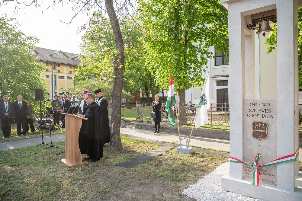 Na platou ispred crkve u Orošhazi, gradonačelnik ovog mesta Zoltan David i bivši gradonačelnik Bela Nemet, svečano su otkrili bronzano crkveno zvono, koje stoji na stalku od specijalnog krečnog kamena, a delo je vajara Gabora Banfi. Zvuk ovog zvona treba stalno da podseća građane na mir božiji, zbog čega je nakon otkrivanja prvi put i zazvonilo. Svečanost je uključivala i dodelu priznanja i povelja naistaknutijim preduzetnicima, kulturnim i prosvetnim radnicima, sportistima, radnicima javnog života, kao i zdravstvenim radnicima.