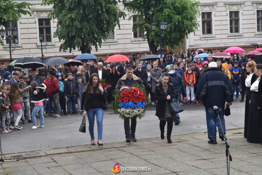 Ispred spomenika na Trgu Slobode u Srbobranu, svečanost je otvorena himnom “Bože pravde” koju je izveo hor “Zora”, a zatim se pristupilo polaganju cveća u čast palih heroja. prvi su vence položili predstavnici lokalne samouprave, predsednik opštine Radivoj Paroški, zamenik predsednika Lazar Krajinović i predsednica skupštine Milena Alargić. Nakon njih isto su učinili i: SUBNOR Srbobran, Udruženje ratnih vojnih veterana, Udruženje boraca “Hrabri borci”, Udruženje ratnih vojnih invalida, kao i lokalni odbori Srpske napredne stranke, Socijalističke partije Srbije i Jedinstvene Srbije.