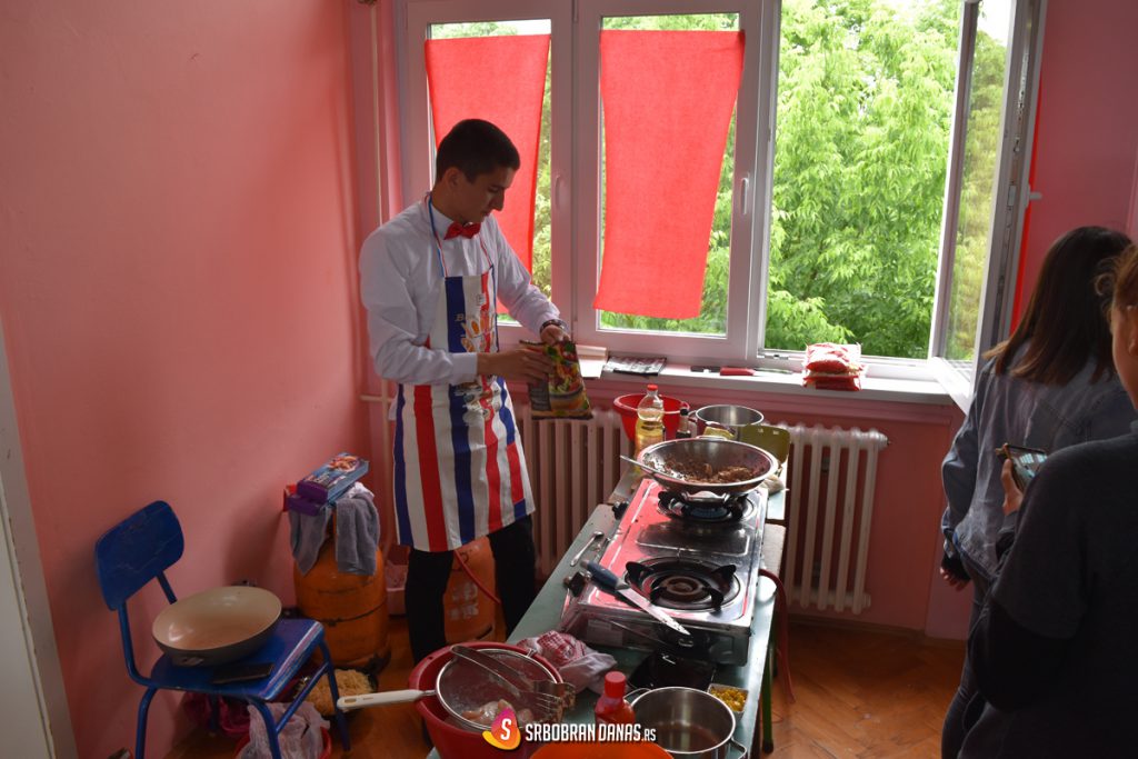 “Tu je i nezaobilazni Kineski zid, i ratnik koji nam se njega priča o nastanku zida, kako i kada je građen i koja je bila njegova svrha. Imali smo i dva štanda na kojima su devojčice zadužene za kviz i asocijacije, i jedan na kome se možete oprobati u kaligrafiji keneskim pismom. Kung Fu kao jedna od tradicionalnih kineskih veština našla je mesto kod nas, tu su u centralnom delu devojke koje se bave Mandalom, drevnom umetnošću koja nastaje posipanjem raznobojnih zrna peska. Poseban deo zauzima restoran ‘Kineski Zmaj’, u kom je glavni kuvar Paroški Lazar, koji sjajno priprema hranu za sve nas. Za kraj je ostavljeno malo iznenađenja, a to je predstavljanje pravog kineskog zmaja. Moram učenicima II1 odeljenja da se zahvalim na celokupnom radu i trudu koji su uložili, da bi se ovaj dan prikazao onako kako treba. Želim da se zahvalim i direktorki škole Mariji Tutorov, i pedagogici Tatjani Jojkić, koje su mi bile velika podrška, kao i roditeljima i sponzorima bez kojih ovo ne bi bilo moguće. U pitanju su doo ‘Paroški’ i ‘Bakin Kutak’ zdrava hrana”, rekla nam je Tijana Melezović profesorka Geografije.