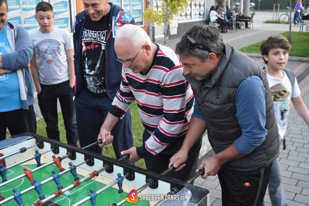 Srbobranski Trg Republike bio je juče ispunjen narodom, ujedno neobična i vrlo lepa slika, a povodom početka dva humanitarna turnira. Istovremeno su otpočeli, već poznato takmičenje u nožnom tenisu, ali i novi turnir u stonom fudbalu koji je privukao veliki broj učesnika.