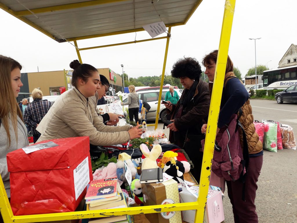 Ovoga puta udružili su se srednjoškolci i zabavištanci. Učenici Gimnazije i ekonomske škole “Svetozar Miletić”, pokrenuli su Humanitarnu akciju “Bazar radosti”, a sprovodili su je na srbobranskoj pijaci, dva vezana petka, 31. maja i 7. juna. Mlađi aktivisti, koji svoje rano detinjstvo provode družeći se u vrtiću “Snežana”, napravili su i išarali najslađe medenjake kako bi se priključili Humanitarnoj akciji svojih starijih drugara.