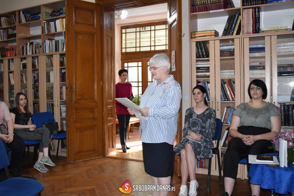 U čitaonici biblioteke, mladog autora je okupljenoj publici najavila i njegove goste predstavila, direktorka ove ustanove Eva Kiš. Ona je podsetila prisutne na to da u ovoj godini biblioteka u Srbobranu proslavlja jubilej, 150 godina postojanja, te joj je kako kaže čast da na tako značajnu godišnjicu ova kuća ugosti jednog domaćeg, mladog pesnika. Gospođa Eva je govorila i o vremenu kada je upoznala Bojana, dok je još bio dečak, član biblioteka, učesnik mnogobrojnih recitatorskih takmičenja, ali kasnije i nagrađivani pesnik na mnogim konkursima i međunarodnim festivalima.