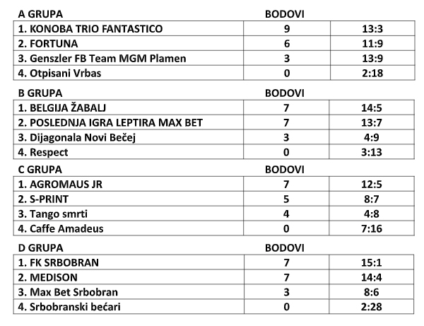 Grupna faza takmičenja na turijskom turniru u malom fudbalu je završena sinoć i imamo rezultate, uz to imamo i novi rekord po broju postignutih golova. Takođe donosimo vam konačan raspored timova po grupama i najavu prvih mečeva četvrtfinala.