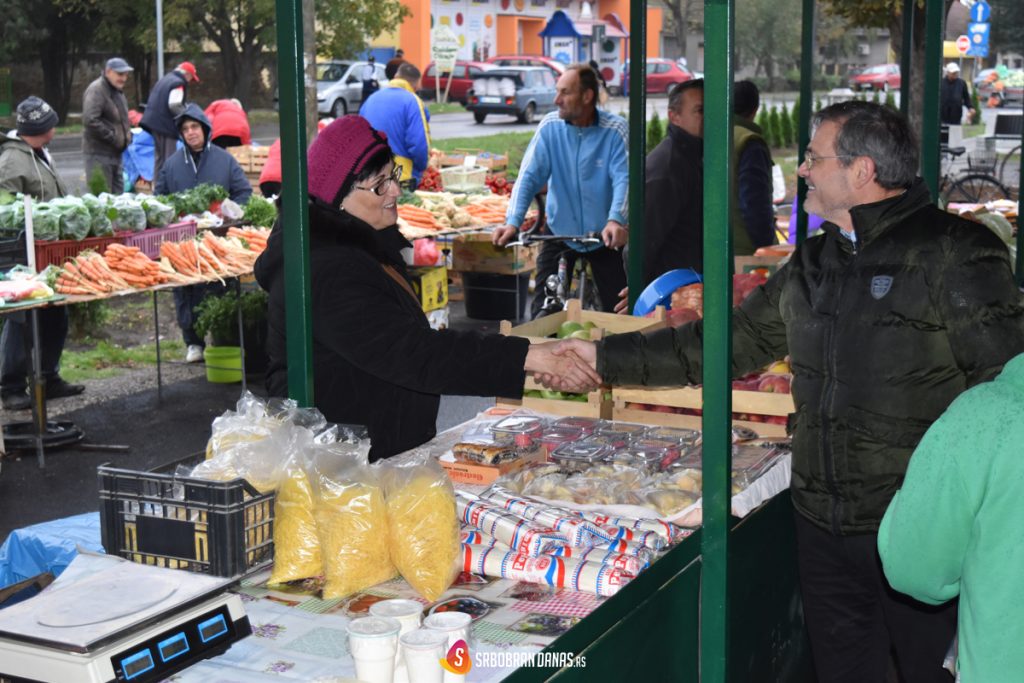 “Drago mi je što je pijaca opet u funkciji, i moram da izrazim lično zadovoljstvo koje osećam kada vidim kako sada izgleda. Ovaj prostor, kod takozvanog ‘Svaštara’, godinama je bio zapušten, što nije bilo lepo za videti u centru Begluka. Pijaca je nekada bila na ovom istom mestu, ali je u jednom momentu odlučeno da bude preneta na drugo mesto, međutim ljudi su navikli ovde da dolaze, tako da ta nova lokacija nikada nije zaživela kao pijaca. Na zahtev velikog broja građana, mi smo odlučili da uredimo ovaj ceo prostor, pa i plato za pijacu. Od danas je pijaca opet na svom starom mestu. To je jedno kultno mesto na koje dolaze mnogi Srbobranci, a ne samo Beglučani. U razgovoru sa građanima danas, a ima dosta ljudi iako je loše vreme, čuo sam da su svi zadovoljni što je pijaca ponovo na Begluku, ali isto tako zadovoljni su što je uređen ovaj prostor, koji čine dve ulice, Janka Katića i Pere Segedinca, i ovaj plato koji ih povezuje. Centar Begluka sada zaista mnogo bolje izgleda, i sigurno je da može da ulepša život građana. Prostor je oživljen i njime Begluk dobija ne samo u lepšem prostornom smislu, već i u priverdno-ekonomskom smislu, jer će se pored mnogobrojnih trgovinskih radnji koje ovde postoje, ja se nadam pojaviti i zanatske radnje i da će ovaj deo Srbobrana biti mnogo življi u narednom periodu. Za održavanje ovog prostora biće zadužen JKP ‘Graditelj’, koji je uostalom zadužen i za sve druge pijačne prostore u opštini. Ono što vidim da može da se uradi još, jer ima prostora, je još jedan red tezgi u nastavku ovih tek postavljenih, jer očigledno postoji potreba za tim”, najavio je Paroški za kraj svog izlaganja.