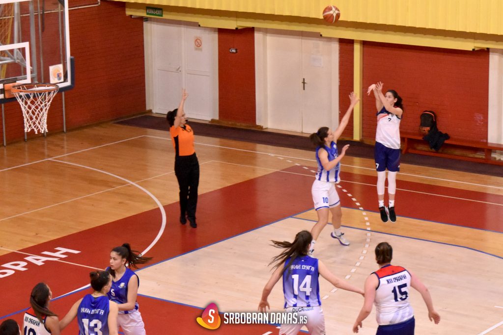 Pozicije na tabeli naravno nisu uvek merodovane i ne govore o stvarnom kvalitetu pojedinačnih timova, mnogo je parametara koji utiču na rezultat, a sinoć je jedan od njih prevagnuo u korist srbobranskih devojaka, velika želja da se pred domaćom publikom upiše pobeda. Šabčanke su u utakmicu ušle suviše rasterećeno, verovatno sa stavom da će u Srbobranu lako doći do pobede. Taj osećaj nadmoći je splasnuo vrlo brzo, “Belle” su povele na startu i do kraja prve četvrtine uspele da zadrže minimalnu prednost. Nakon kratke pauze “Duga” se konsoliduje i ulazi u drugu četvrtinu ozbiljnije, prelaze u vođstvo i uspevaju polako da ga povećavaju, ali nikad više od 7 poena razlike. Tek u četvrtoj deonici igre, 8 minuta pre kraja, domaći tim uspeva da ponovo povede, a do isteka 40. minuta sa bržom igrom i agresivnijim duelima, nošene gromoglasnim navijanjem sa tribina, naše devojke zadržavaju prednost i slave prvu pobedu kod kuće u ovoj sezoni, što je uz trijumf u Ljuboviji drugi pozitivan rezultat, koji je izazvao ogromnu sreću u celoj ekipi (rezultat po četvrtinama: 10:9, 12:18, 16:14 i 24:18).