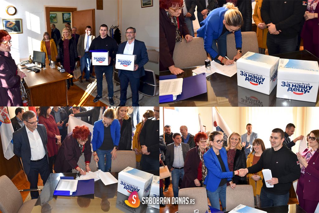 Najveća stranka u opštini prva je sakupila potreban broj potpisa, a zatim i prva predala kandidaturu za izbore. Veliki broj kandidata za odbornike, u pratnji stranačkih kolega, i čelnika stranke zajednički su krenuli iz prostorija SNS-a u ulici Svetog Save, ka zgradi opštine noseći pred sobom kutije sa potrebnim potpisima, uz veliki transparent podrške predsedniku stranke i republike.