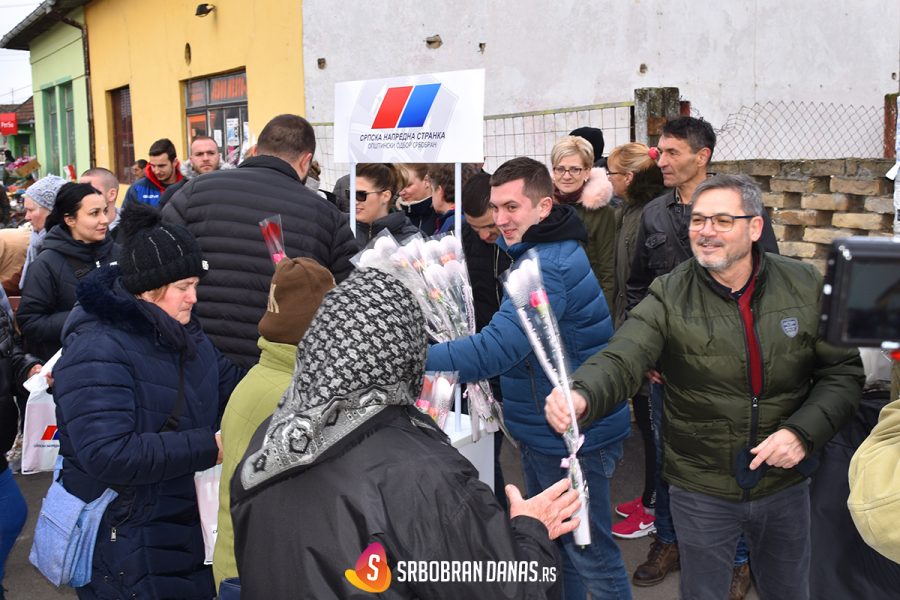 Članstvo stranke već u pola 8 ujutru bilo je na pijačnom Trgu u ovom delu Srbobrana, gde su postavili svoj pult, odakle su svakoj prolaznici čestitali Dan žena i poklonili joj po karanfil ili ružu. Nekolicina aktivista ponela je u naručju cveće i obišla sve pijačne tezge, gde su darivali malim znakom pažnje i prodavačice koje i po hladnom vremenu snabdevaju građane različitim proizvodima.
