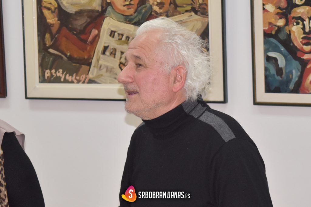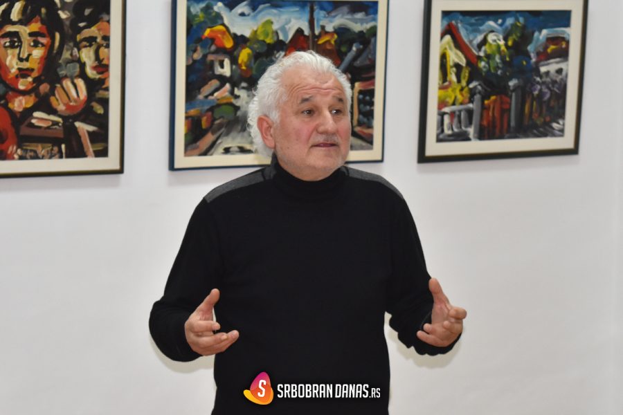 “Drago mi je da sam danas posetio Srbobran, jedno predivno mesto na koje svi njegovi stanovnici mogu biti ponosni.” A zatim je rekao par reči o svom stvaralaštvu: “Moj način slikanja nije čest kod današnjih autora. Imao sam prilike da živim u Kragujevcu jedno vreme i tamo sam upoznao čoveka koji je na sličan način radio slike, što je na mene ostavilo snažan utisak. Ekspresionizam je takav da sliku prvo dugo nosiš u sebi, a onda je u jednom kratkom intervalu brzo preneseš na platno. Retki su stvaraoci koji ga primenjuju jer on se ne uči, sa njim se rađaš, samo je pitanje kad ćeš ga u sebi otkriti. Malo je takvih talenata, što se vidi kod ovih današnjih modernih umetnika, njihove slike nemaju dušu, ne nose nikakvu emociju u sebi i posmatrač ih se lako zasiti. Mislim da sam svojim načinom slikanja najbliži Konjeviću, i drago mi je kad drugi to primete, jer on je jedan od najpoznatijih naših vojvođanskih slikara.”
