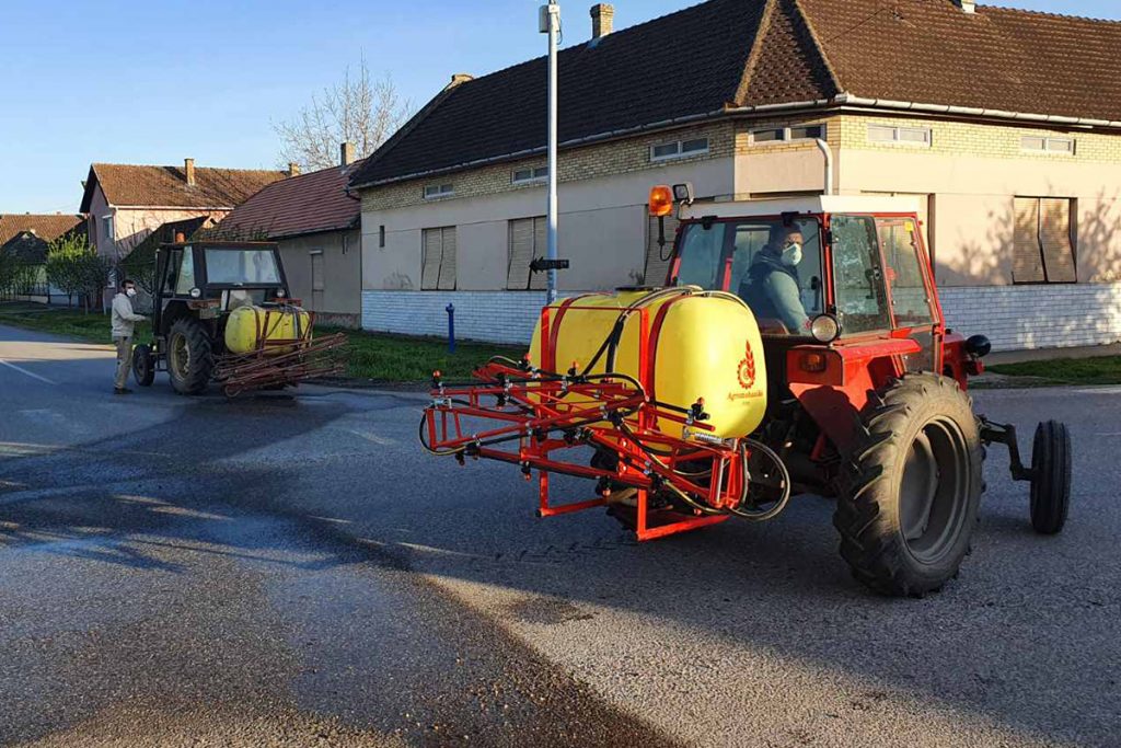 Jučerašnji kišni dan odložio je malo posao dezinfekcije ulica na teritoriji opštine Srbobran, ali već danas nastavljeno je sa poslom. Turijski poljoprivrednici svojim traktorima i prskalicama napunjenim natrijum – hipohloritom, sredstvom koje je obezbedilo JKP “Graditelj”, prošli su sve seoske ulice i tako učinili svoje mesto čistijim, a žitelje bezbednijim od koronavirusa.