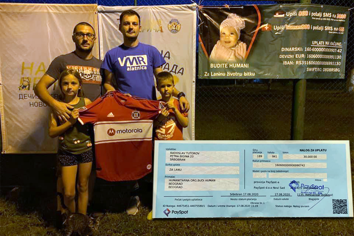 Jedno od najaktivnijih srbobranskih udruženja prethodnog vikenda bavilo se humanitarnim radom, odnosno prikupljanjem novčanih sredstava potrebnih za lečenje male Lane Jovanović. “Naša priča” je na svom igralištu uz pomoć mnogobrojnih posetilaca prikupila ukupno 98.500 dinara.