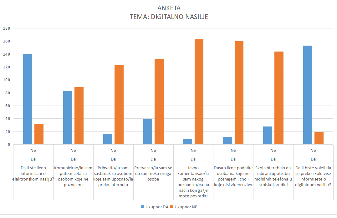 Anketa je sprovedena među srbobranskim srednjoškolcima i osnovcima završnog razreda, njih 172, sa ciljem da se sazna koliko su informisani o digitalnom nasilju, jer baš oni su najizloženiji.