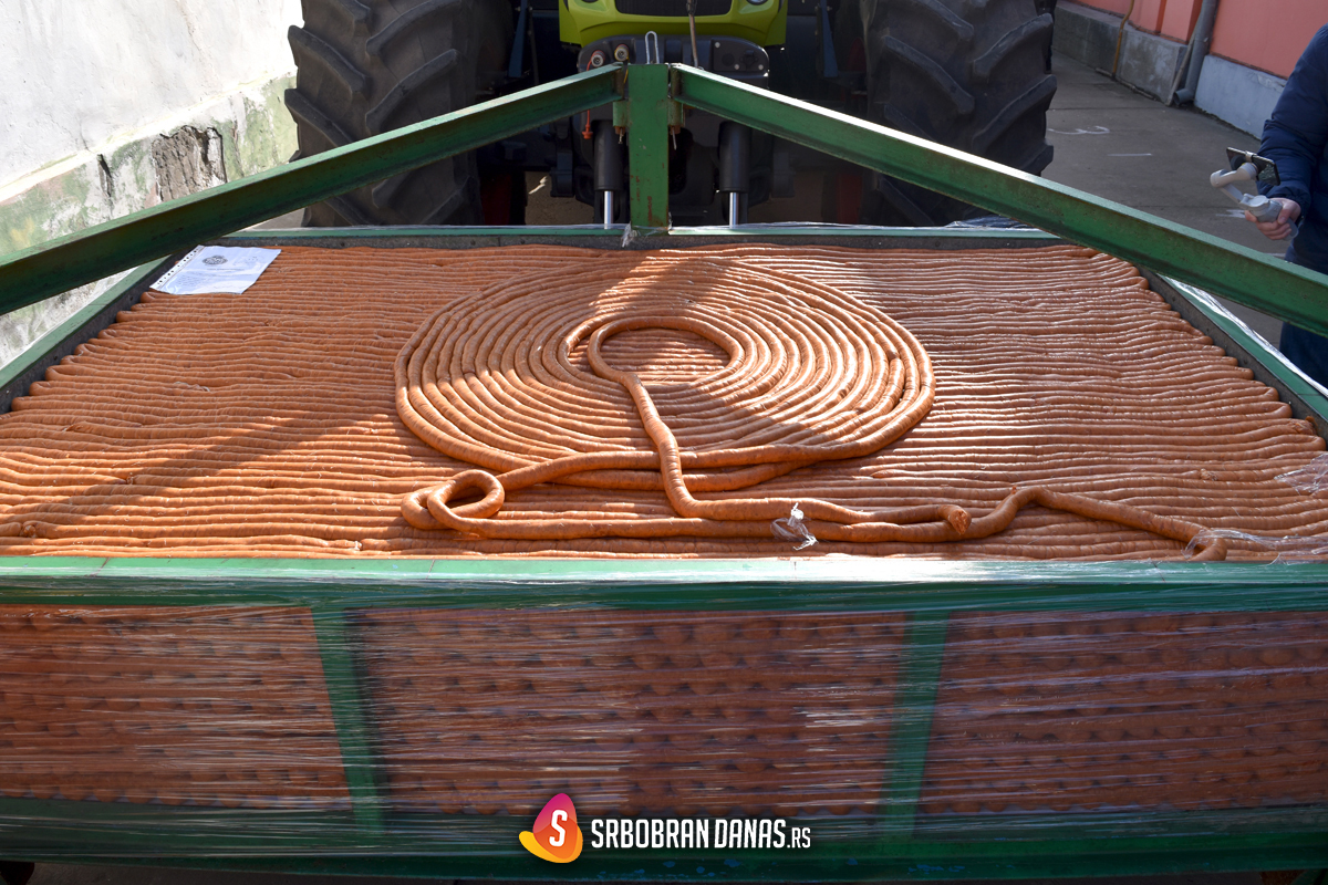 Branislav Stankov, predsednik Udruženja Kobasicijada, otkrio nam je ugrubo recept za pravljenje grdosije u svetu kobasičarstva, a ko je u mogućnosti može da pokuša taj recept da iskoristi. “Ove godine napravili smo rekordno dugu kobasicu, 2.037 metara, za koju je utrošeno oko dve tone mesa, dvadeset kilograma slatke paprike i pet kilograma ljute, po šest kilograma bibera i belog luka i 40 kilograma soli. Ipak smo uspeli da je i ove godine napravimo, uz pomoć predsednika Opštine Srbobran, i tako nastavimo tradiciju. Podelićemo je u humanitarne svrhe, dok smo ranijih godina gostovali po gradovima, pozivali ljude na našu manifestaciju i delili kobasice, a ove godine smo odlučili da celu kobasicu podelimo”, rekao je Branislav Stankov.