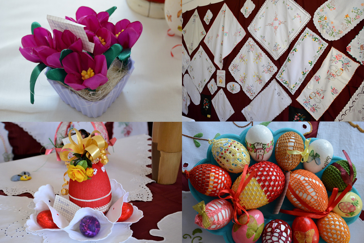 U prostoru galeriji prikazani su razni predmeti koji su vezani za praznik, kao što su jaja ukrašavana na najrazličitije načine, prikazan je šareni vez sa motivima zečeva, cveća i proleća, verski motivi, prikazan je i takozvani “beli vez”. On je posebno značajan za pripadnike mađarskog naroda u Srbobranu, jer je duboko utkan u identitet ovdašnjeg stanovništva, za šta je gospođa Robotka rekla kako je ponosna što članice kluba to umeju da rade. Tu su naravno i tradicionalno ukrašeni upotrebni predmeti iz domaćinstva: kecelje, stoljnaci, jastučnice i dr.