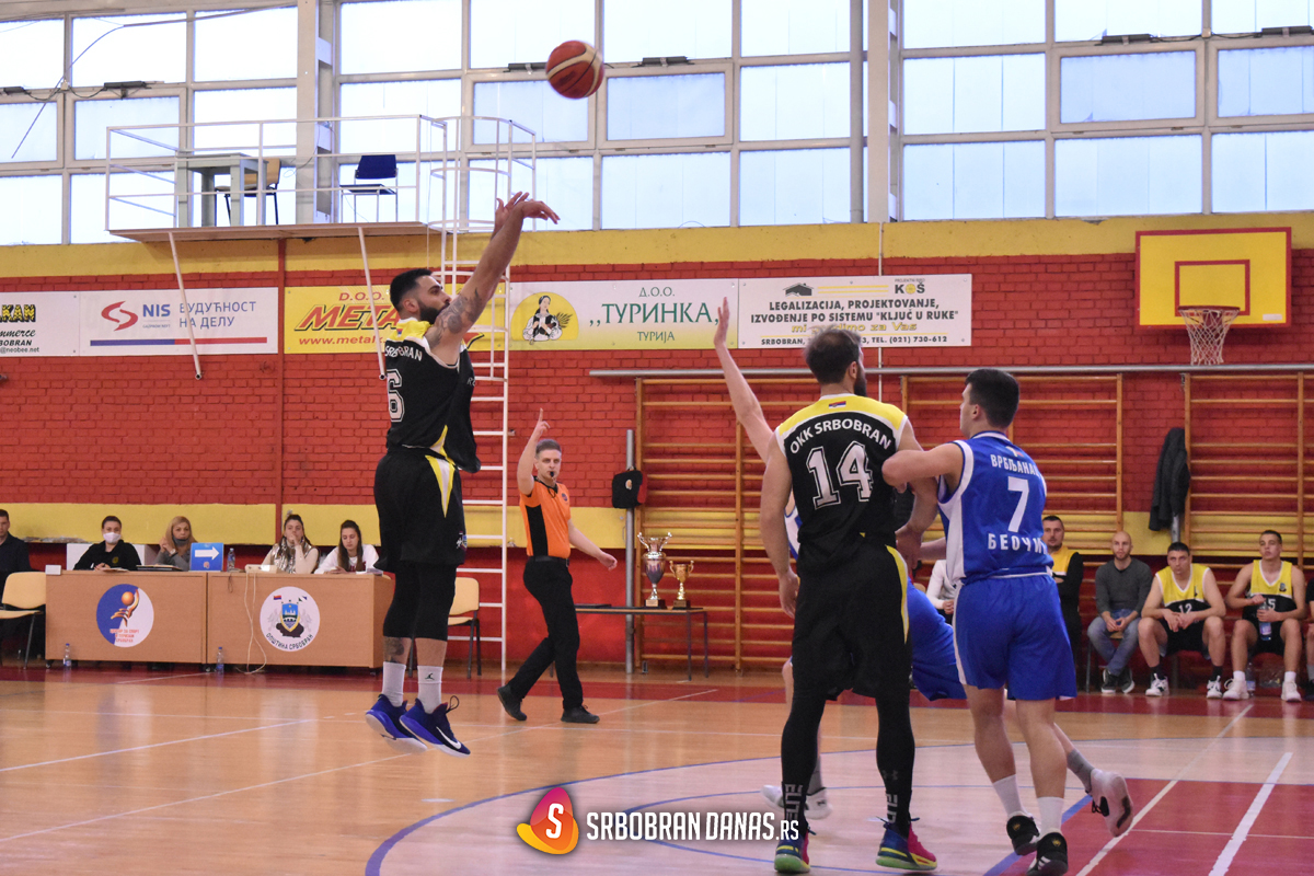Oproštajnu utakmicu u Drugoj regionalnoj ligi, pošto od oktobra klub takmičenje nastavlja u Prvoj regionalnoj, Srbobranci su igrali sa ekipom iz Beočina, na svom terenu. Bila je to skoro trening utakmica, pošto je razlika u kvalitetu dve ekipe značajna, ali je ipak odigrano ozbiljno jer je postavljanje uvek novih ciljeva imperativ momaka u crnim dresovima. Pored želje da u viši rang uđu kao neporaženi, što niko pre nije uspeo, novi cilj je bio da se ostvari prosek od 100 poena po meču, za šta je bilo potrebno ubaciti 110 na ovom poslednjem. Naravno i taj cilj je ispunjen, utakmica je završena rezultatom 110:79. Zaista istorijski uspeh za srbobrtansku košarku i sport uopšte.