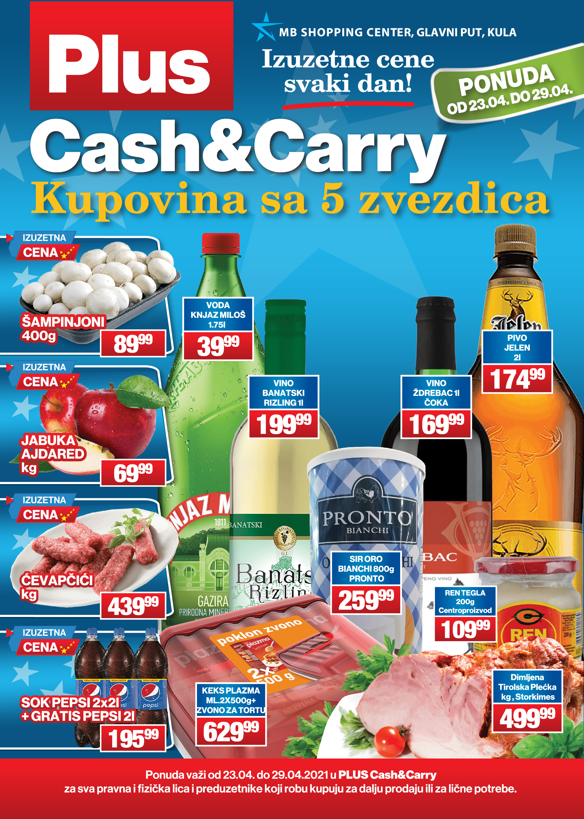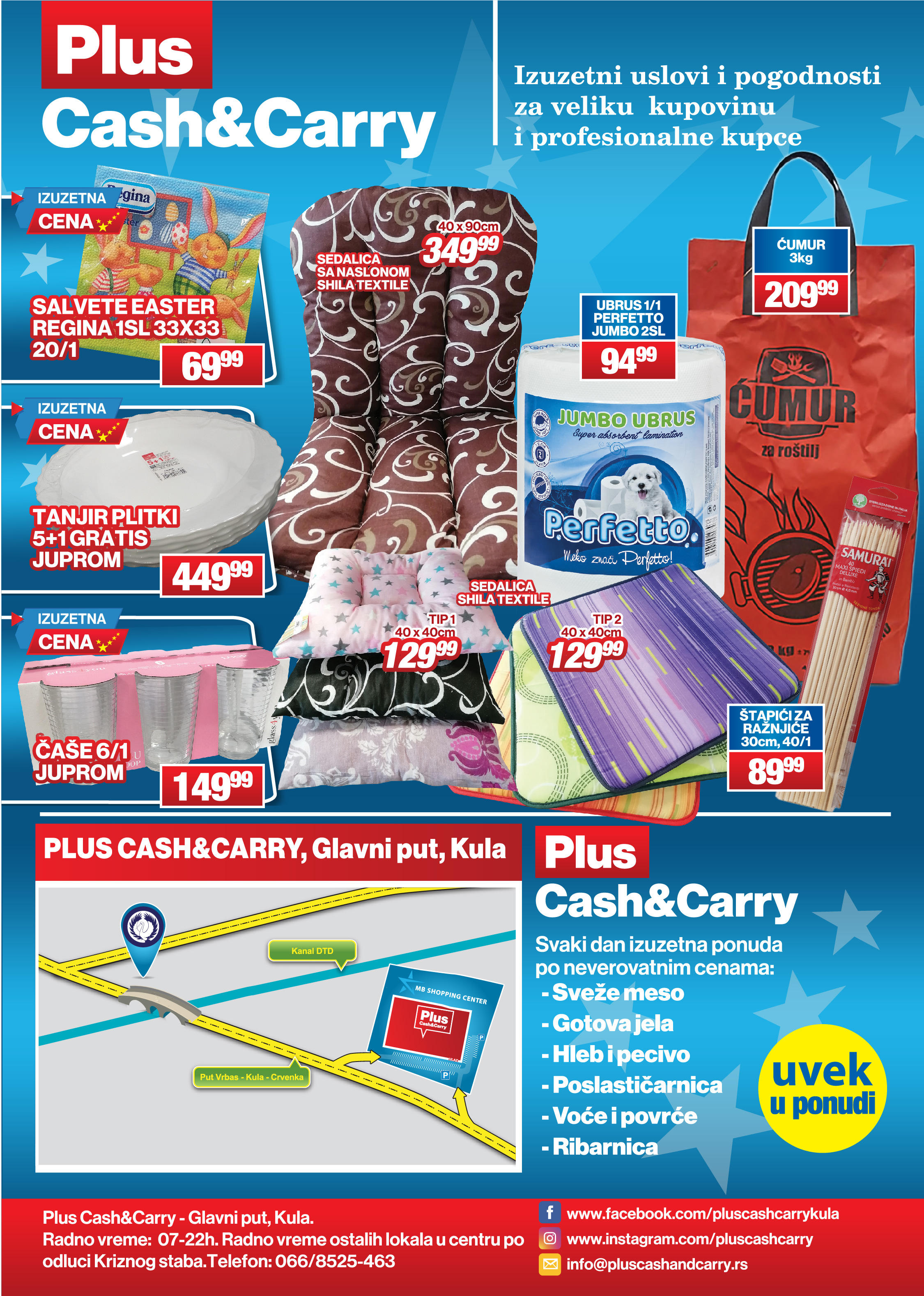 Podsećamo vas da Plus Cash&Carry u Kuli nudi izuzetne uslove i pogodnosti za veliku kupovinu i profesionalne kupce, kao i da ovde svakog dana možete da pronađete sveže meso, gotova jela, hleb i pecivo, voće i povrće i proizvode iz poslastičarnice i ribarnice.
