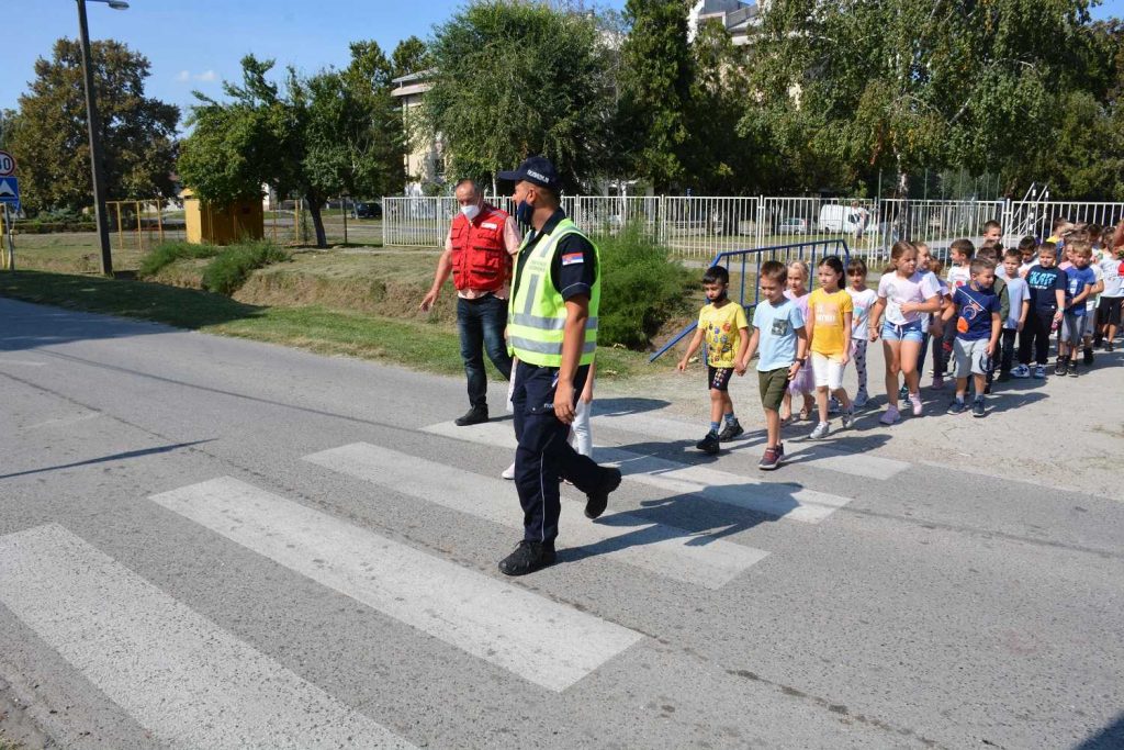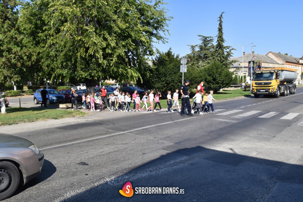 Prvo su službenici saobraćajne policije održali teorijsko predavanje deci o tome kako se bezbedno prelazi ulica i kako se uopšte kretati u blizini saobraćajnica, a potom su poveli decu, u pratnji njihovih učiteljica, do ulice Svetog Save, gde su u nekoliko navrata đaci naučeno i primenili.