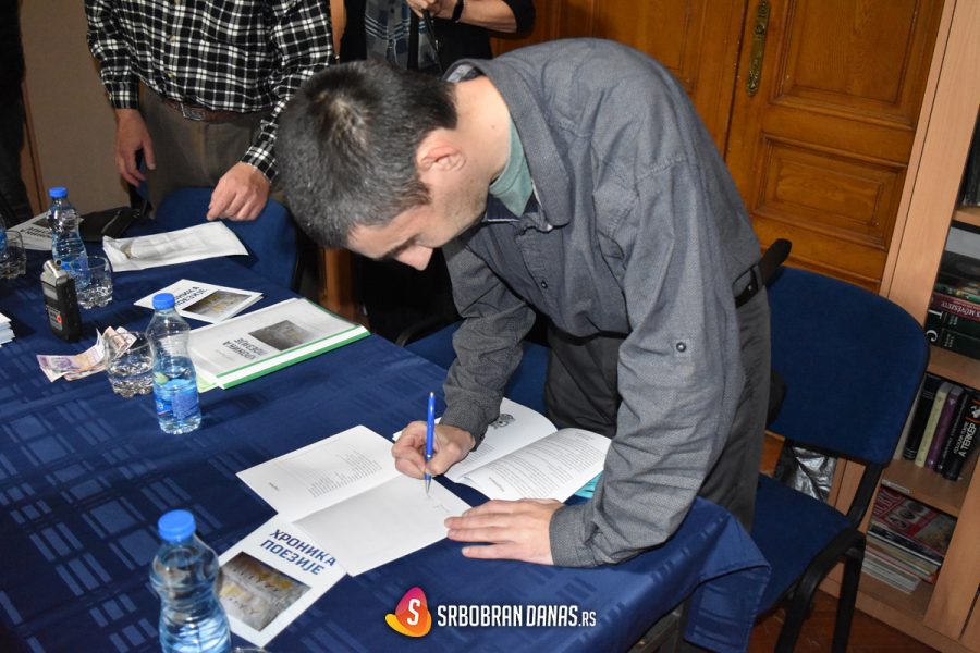 Prvo je poklon u vidu 5 knjiga uručio prijateljskoj ustanovi, Narodnoj biblioteci, zatim Ištvanu Fusku i MIleni Cvejić, kao i predsedniku Opštine Srbobran, Radivoju Debeljačkom, koji je prisustvovao promociji knjige. Zatim su i drugi u publici dobili priliku da dođu do svog primerka, po simboličnoj ceni, a pesnik je onima koji su to zatražili rado potpisao primerak.