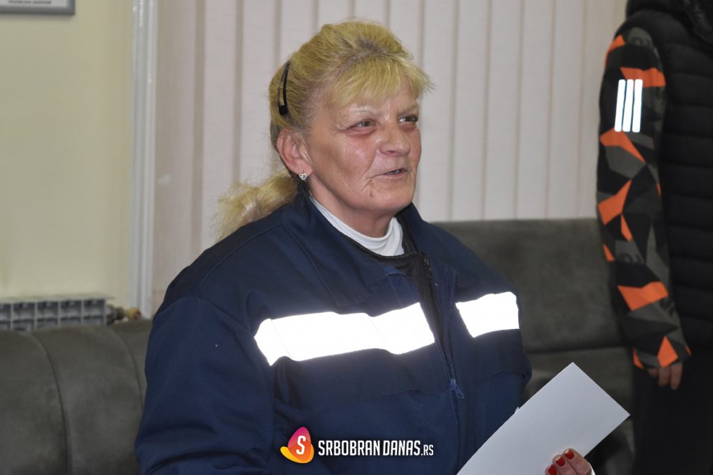 Jedina dama među nagrađenima, Marija Đorđević, u ime svojih kolega je zahvalila na poklonima i pažnji koja im je upriličena, ističući da ona svoj posao voli i nije joj teško da ga svakodnevno obavlja. “Radim svoj posao sa voljom i sa ljubavlju, tako da mi ništa nije teško. Čak i kad imamo da uradimo nešto malo teže kolege mi pomognu, tako da mogu reći da sam zadovoljna. Radi se od 5 ujutra, čim se razdani napolju smo, ja čistim, a kolega prazni kante. Idemo zajedno ulicama i ako neko od nas malo zaostane stanemo i pomognemo jedno drugom. Stvarno mi je drago što radim ovo, tu mi je bila želja da se zaposlim i zahvaljujući mom direktoru Milošu i šefu Milanu, to i radim. Hvala im na tome i što su tu za nas radnike šta god nam treba”, podelila je sa nama svoje iskustvo Marija Đorđević.