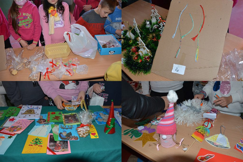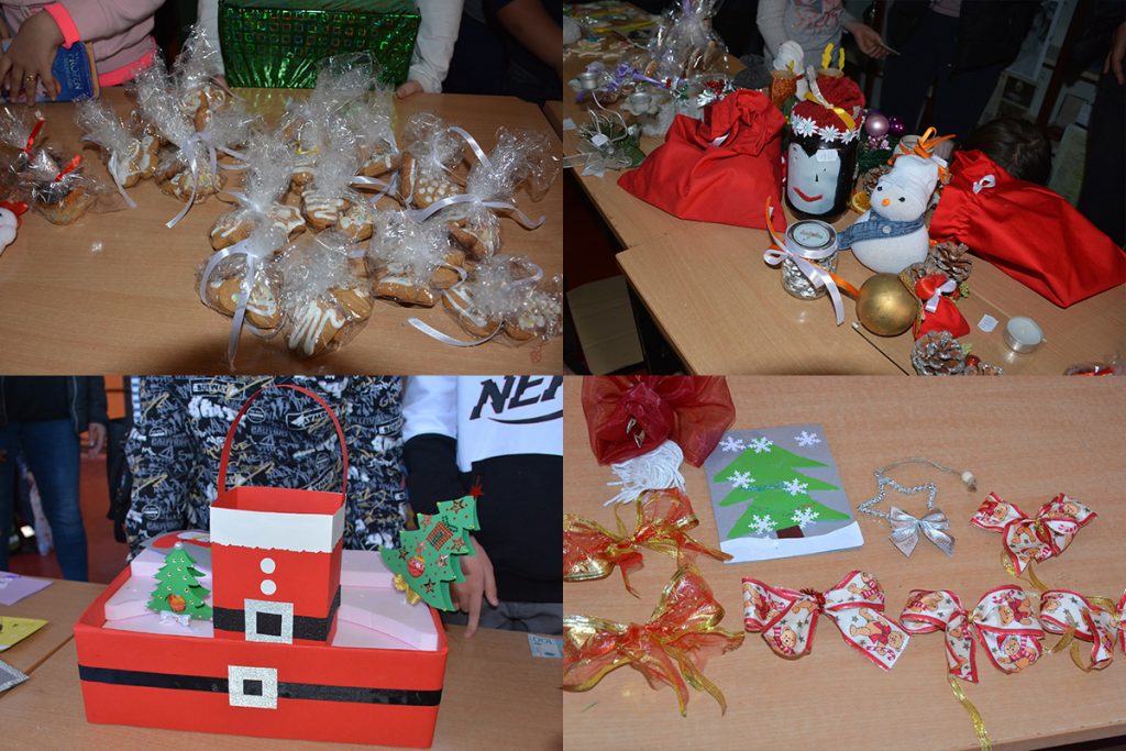 Deca su po vrlo pristupačnim cenama prodavala svoje rukotvorine. Među njima bilo je okićenih novogodišnjih jelki, razglednica sa motivima jelke, medenjaka, ukrasa, jelkica od kartona sa šljokicama, ikebana i drugih zanimljivih stvari koje su nastale vrednim radom dece, njihovih roditelja i učiteljica.