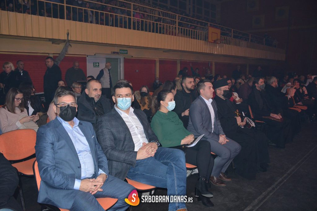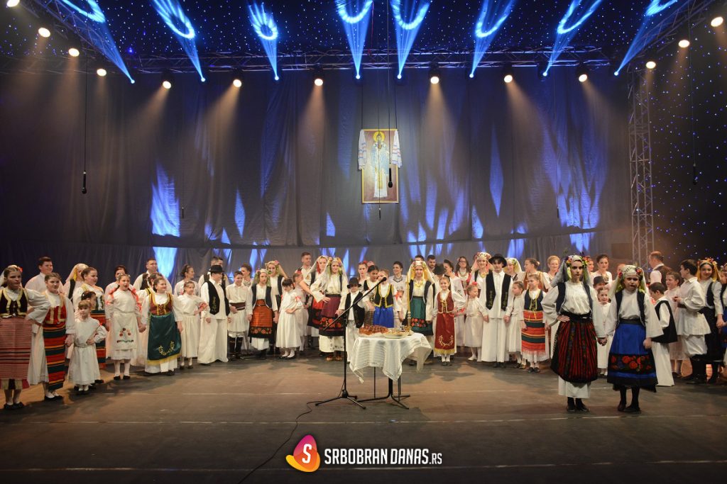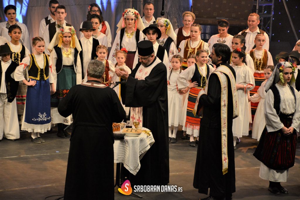 Kako to tradicija nalaže skup je otvoren obredom osveštanja slavskog kolača i žita, koji su vodili sveštenici Srpske pravoslavne crkve iz Srbobrana, a zatim se otac Jovan Kezan obratio okupljenima. “Kao što je njegov otac Stefan Nemanja vodio brigu o materijalnim dobrima svoga naroda, tako je Sveti Sava vodio brigu o duhovnim dobrima svoga naroda. Stavljajući našu otadžbinu kao malu kuću sa četiri prozora i četiri strane sveta, i kako je govorio vladika Nikolaj naša otadžbina je istok zapadu i zapad istoku, peti prozor je otvoren i upućen nebu našem gospodu Isusu Hristu”, čestitajući slavu domaćinima rekao je između ostalog Kezan.