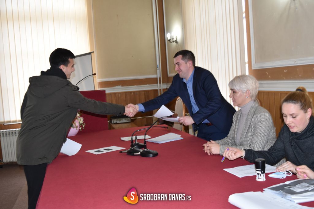 Buduće akademske građane svoje opštine dočekali su njen predsednik, Radivoj Debeljački, i predsednica Skupštine Milena Alargić, a pre samog potpisivanja i predaje dokumenata, Debeljački im se i obratio.