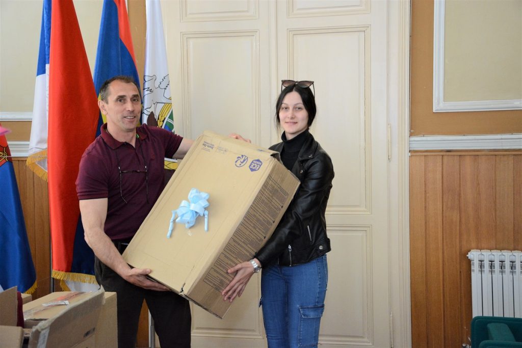 Nakon završenog predavanja, prisutnim roditeljima prvorođene dece su Milica Zarić i Zoran Dudvarski, pomoćnik predsednika opštine Srbobran, uručili vredne poklone u vidu auto-sedišta.