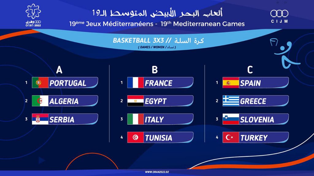 Pored Alžira, na 19. mediteranskim igrama “Oran 2022”, u grupi sa Srbijom je i selekcija Portugalije, dok ostale grupe imaju po četiri ekipe. Pored basketa 3×3 na programu će do 6. jula biti i drugi Olimpijski sportovi, ukupno 292 disciplina u 29 sportova, takmičiće se oko 3.400 sportista iz 26 zemalja sa 3 kontinenta: Evrope, Azije i Afrike. Svim našim sportistima želimo uspeh, a posebno Ivani Curaković i srpskoj basket 3×3 reprezentaciji.