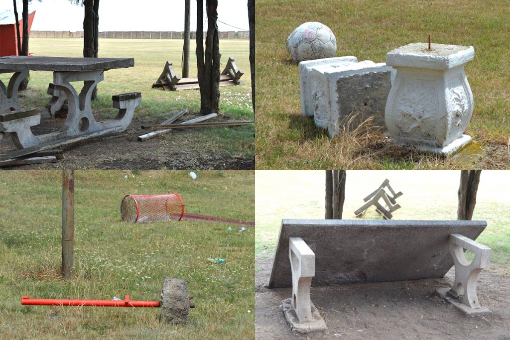 Uništene kante, porušeni golovi, prevrnut betonski sto, polomljene klupe, samo su neki od prizora koje Nadaljčani mogu da zateknu na fudbalskom terenu.
