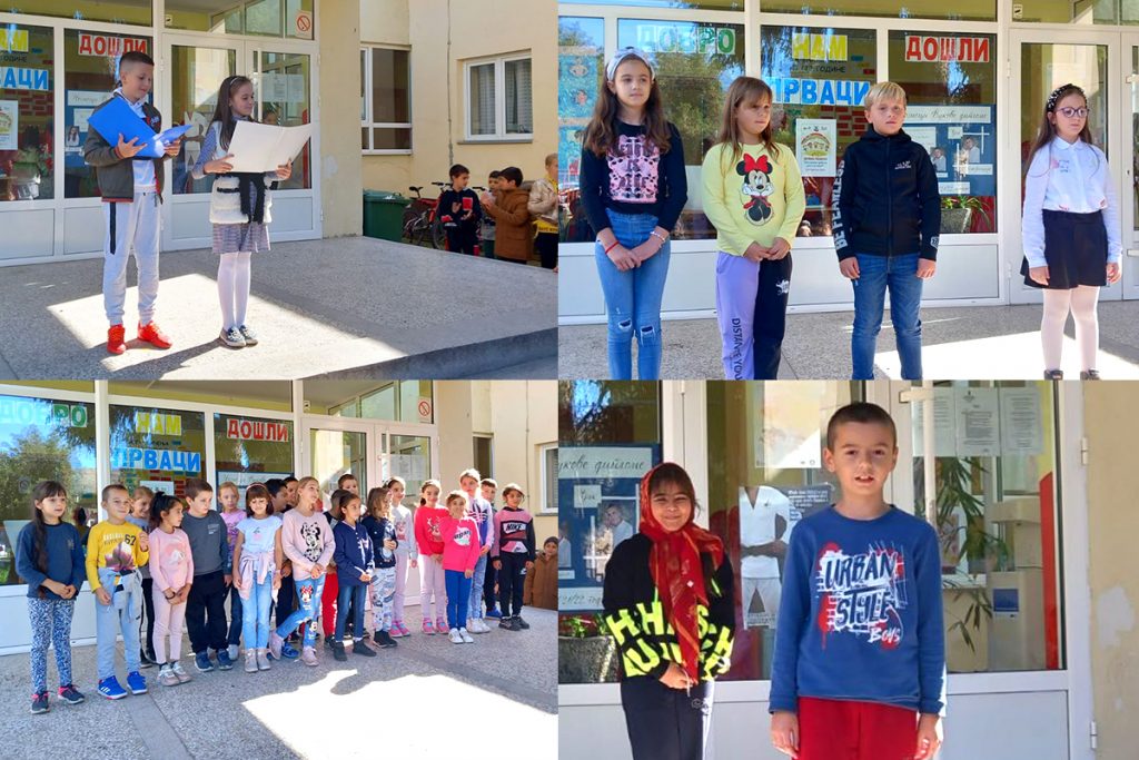 Uz reči dobrodošlice njihovih starijih drugara: “Postajete prvaci danas, to je već ozbiljno zvanje, ukazujemo Vam dužno poštovanje!”, prvaci su primljeni u Dečiji savez. Učenici od drugog do četvrtog razreda nadaljske škole su prigodnim programom: glumom, pesmom i igrom poželeli dobrodošlicu svojim novim drugarima.