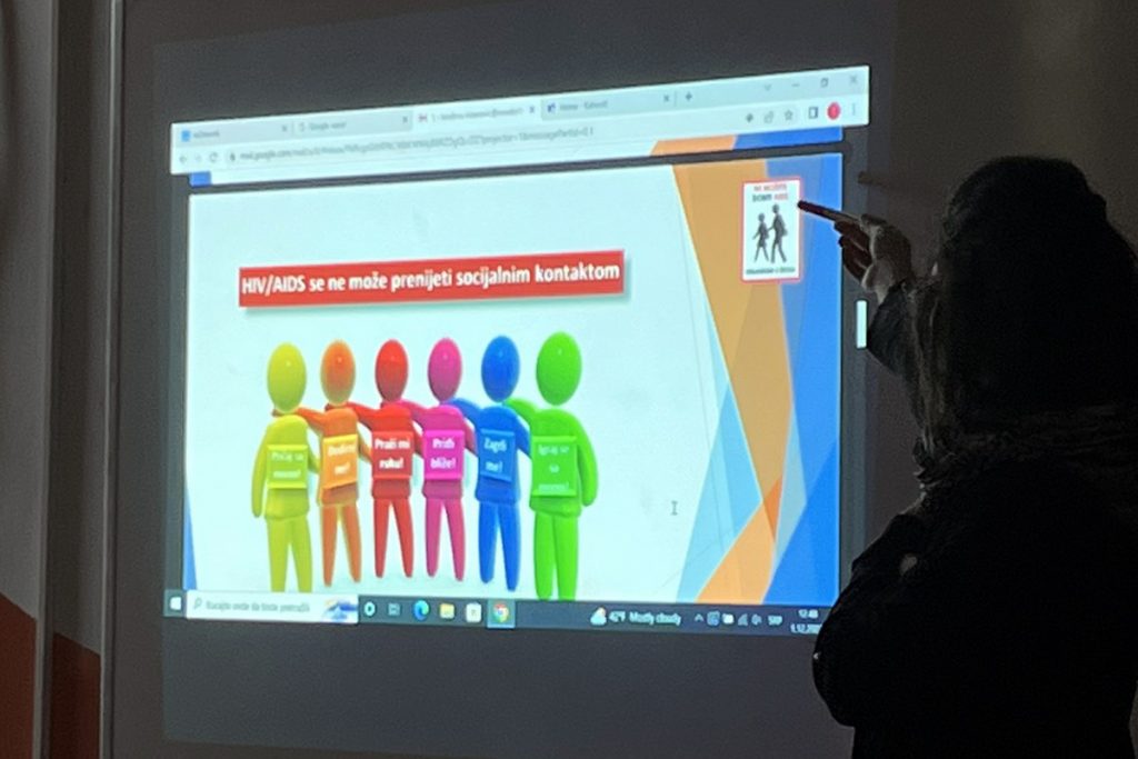 Obeležavanje Svetskog dana borbe protiv side Crveni krst je nastavio u Osnovnoj školi “Vuk Karadžić”, nastavice geografije i biologije potrudile su se da naprave ozbiljnu prezentaciju namenjenu najstarijim osnovcima, gde im je sve o virusu i bolesti detaljno objašnjeno, i još važnije, učeni su da se o tome slobodno razgovara, da mogu postaviti svako pitanje bez ustručavanja, jer samo kad se otklone sumnje i zablude može se postupiti ispravno.