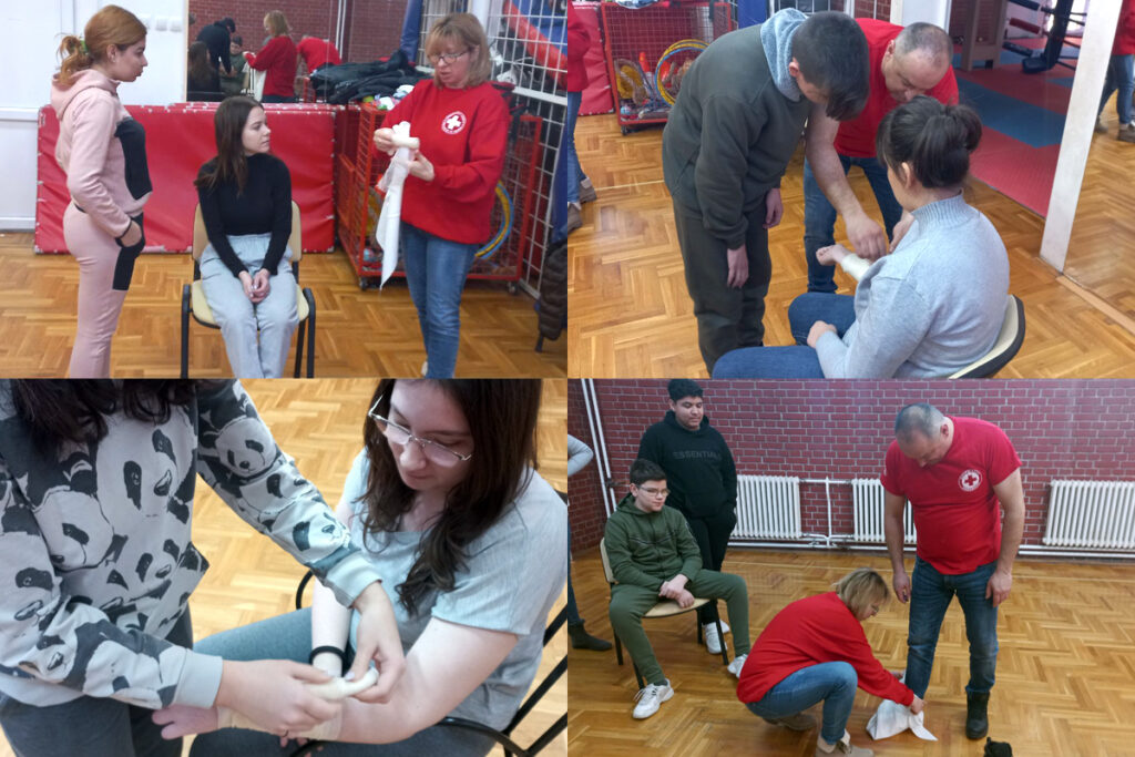 Predavanje održano za učenike prvog razreda, smer frizerski tehničar Gimnazije i stručne škole “Svetozar Miletić”, sprovedeno je u maloj sali CST-a, gde su sertifikovani predavač Prve pomoći Nataša Kaić i dr Ilija Gazepov održali kratko predavanje, a zatim i pokazali postupke poput zaustavljanja krvarenja kod povređenih, postavljanje trouglaste marame, previjanje rane, oživljavanje osoba bez svesti i postavljanje u koma položaj.