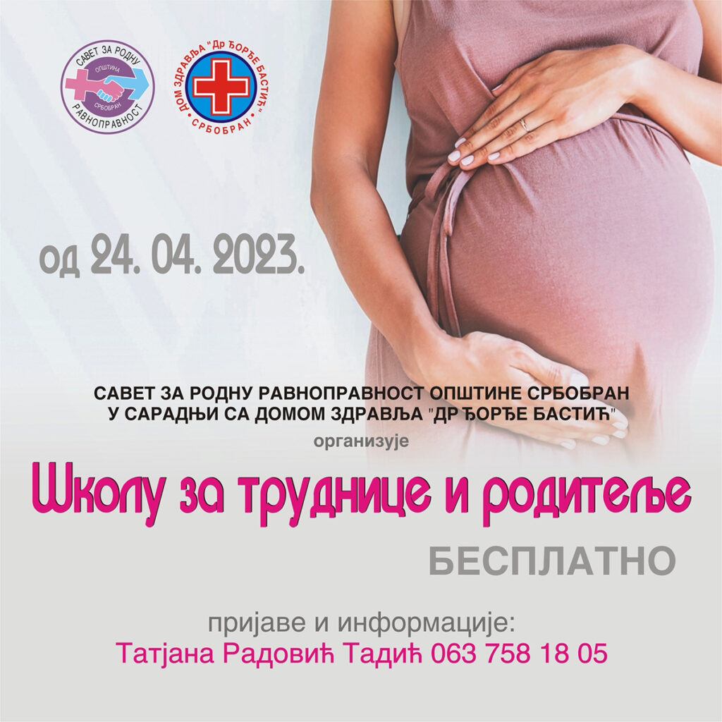 Besplatna Škola za trudnice i roditelje počeće sa radom 24. aprila, do kada se svi zainteresovani mogu prijaviti na telefon 063.758.1805.