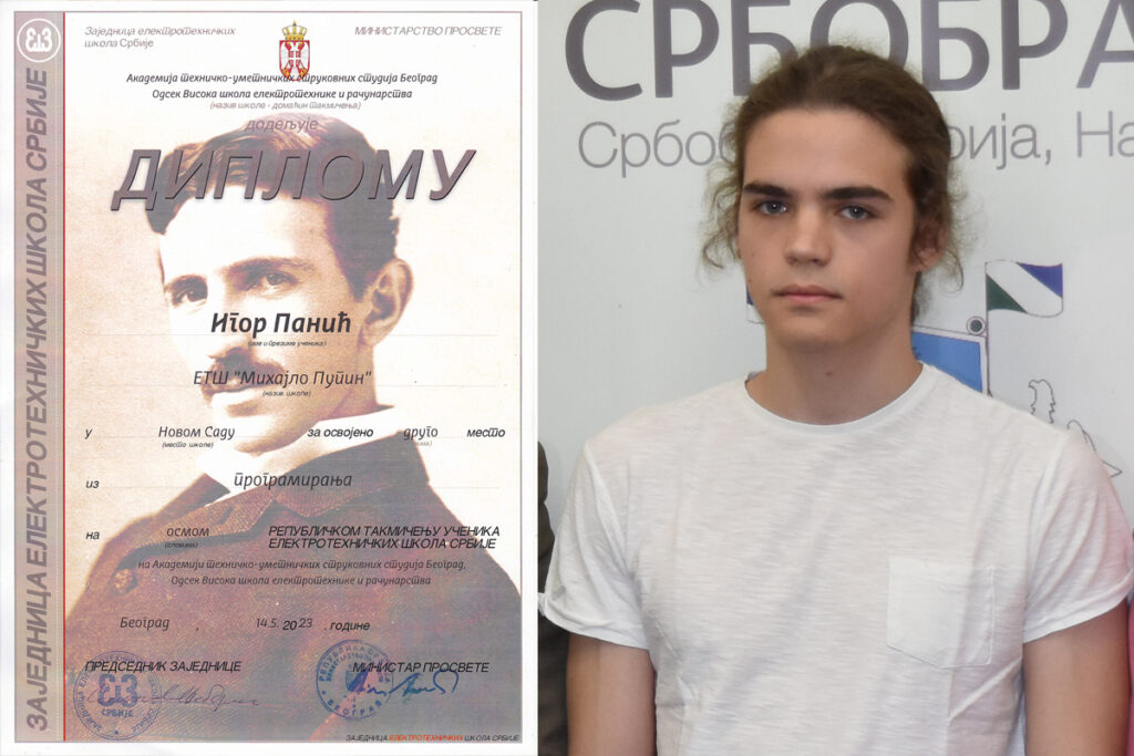 Jedan od najistaknutijih učenika novosadske Elektrotehničke škole “Mihajlo Pupin”, Srbobranac Igor Panić, već drugu godinu za redom pravi izvanredne uspehe na republičkim takmičenjima. Ove godine se izborio za drugo mesto u državi kad je u pitanju predmet Programiranje.