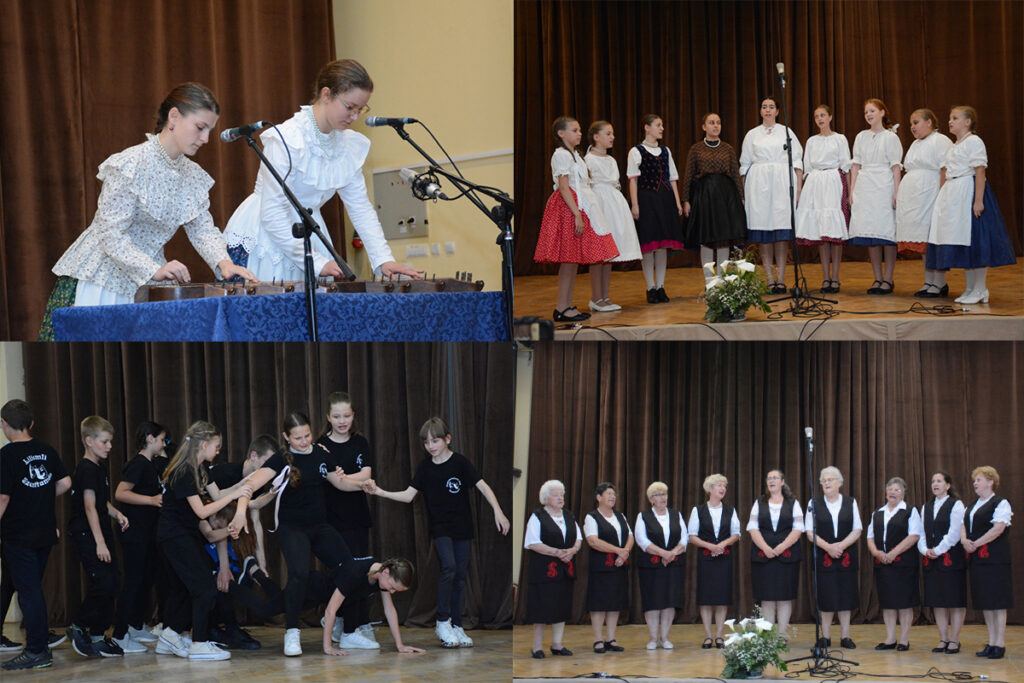 Grupa “Galariš” je imala muzički nastup sa citrama, a mogle su se čuti pesme sa teritorije Južne Velike ravnice. Nedavno su učestvovali na takmičenju narodne muzike i narodnih igara KNV, gde su osvojili specijalnu nagradu, nastupali su i na takmičenju Zlatna Citra, gde su osvojili zlatnu ocenu. Nastupom je doprinela i grupa “Liliomfi”, izvodeći predstavu Ludas Matyi: Variáció a Ludas- történetekre, adaptacija mađarske priče Ludas Matyi. Članovi “Ženskog Hora Čaloganj” su odpevali svadbene pesme iz Bačke, zapevao je i mlađi hor “Boroka”, dok se Folklorna grupa “Kalala” predstavila novim koreografijama. Folklorna grupa “Lángocska” je prikazala narodne igre, plesove Mezefelda.