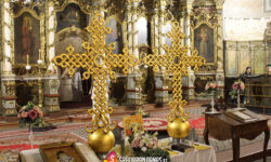 S tim u vezi je i današnja Sveta Liturgija bila svečanija, osvećeni su novi krstovi u prisustvu velikog broja vernika, a zatim su njihovom podizanju na krov isti i svedočili.
